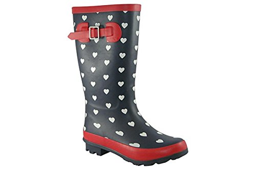 Bring on the rain in the Clarks Adelphiviv girls wellington boots. With a classic wellington silhouette, these navy waterproof boots feature white heart prints and red trims. The rubber soles add grip underfoot for wet-weather wear. Easy to pull on and off, the Clarks Adelphiviv girls wellies are sure to brighten up the rainiest of days.