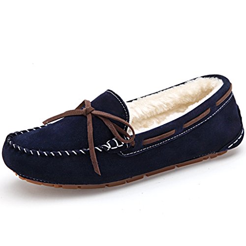 Best Seller! SUNROLAN Women Winter Flats Fashion Suede Snow Shoe Fur-lined Moccasins Driving Shoes Slip on Loafers 821, Navy Blue, UK 5 Review
